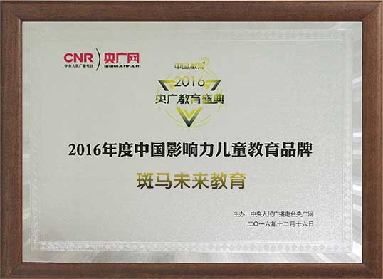 2015年新华网授予斑马未来中国口碑影响力儿童教育机构