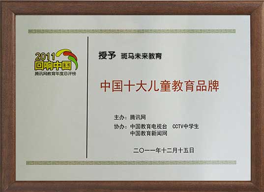 2011年12月腾讯2011回响中国腾讯网教育年度总评榜授予斑马未来中国十大儿童教育品牌