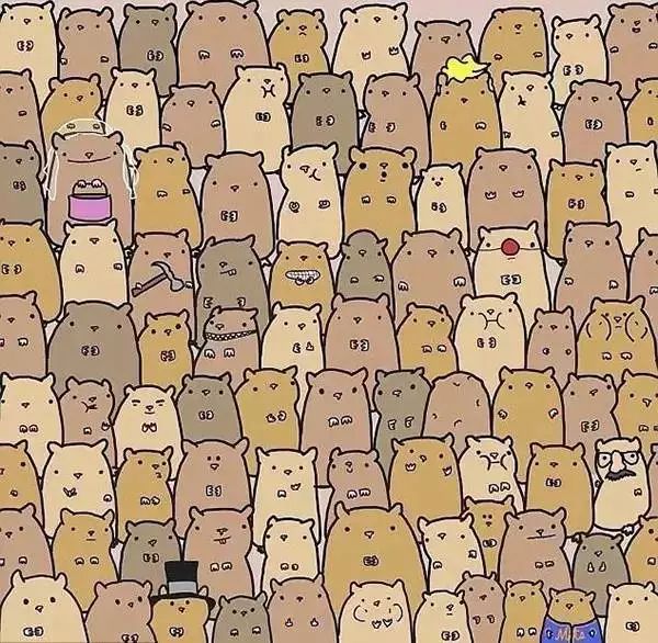 在一群小动物里找到熊猫