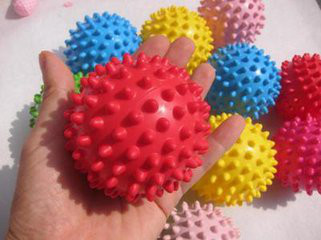 此外,还可以通过让孩子握按摩球的方式来刺激孩子手部,或将按摩球放在孩子的手臂上来回滚动。生活中的做家务、光脚走鹅卵石路也能起到触觉训练的作用。