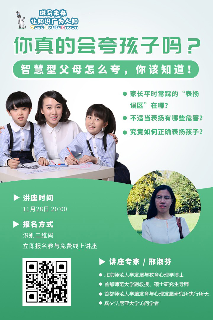 欢迎收听由北京师范大学发展与教育心理学博士、首都师范大学副教授、硕士研究生导师、首都师范大学脑发育与心理发展研究所执行所长、宾夕法尼亚大学访问学者邢淑芬老师为大家带来新一期的讲座《你真的会夸孩子吗?智慧型父母怎么夸,你该知道!》