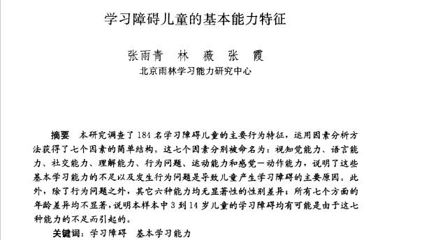 ▲张雨青,Mr.蔡(1995):儿童学习障碍基本能力特点的研究,儿童发展与教育,3,59-64