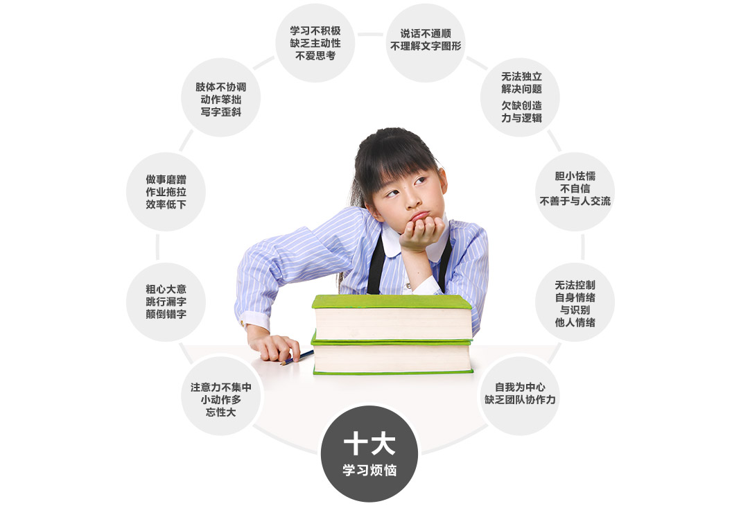 针对孩子感知、记忆和提取信息的活动进行相关能力的培养。系统提升注意力、记忆力;提升视觉与动作的配合度;加强学生的思维与逻辑能力;提高孩子的理解能力,从而提高学习的效率。