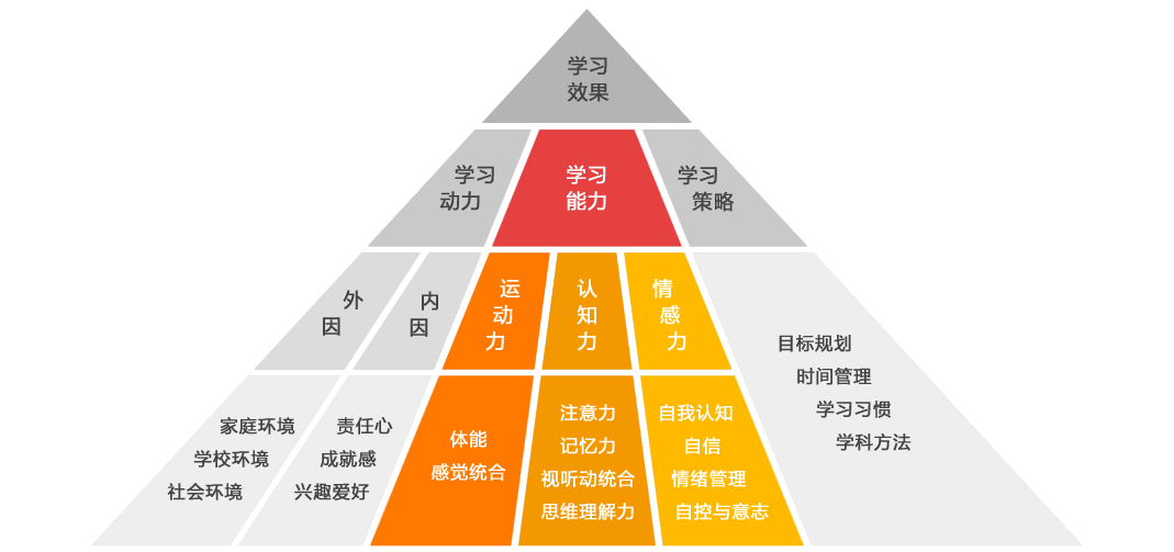 同时,学习能力是一个复合概念,是多种核心能力的共同组成(包含注意力与记忆力、阅读理解、数学思维、视/听知觉、情感力等)。如果仅补充个别能力(如记忆力、注意力)并不能全方位改善孩子的学习能力,从而起到提升孩子学习效果的目的。