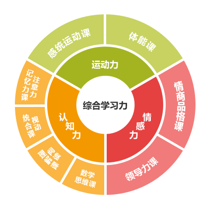 综合学习力是一个复合型的概念,包含了运动力、认知力、情感力。对于处于学习状态的孩子来说,它具体体现在听、说、读、写、计算、思考、社交与情绪调节等方面。
